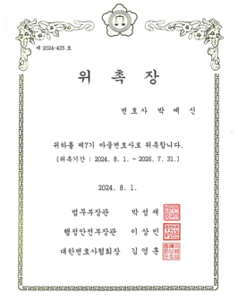 법인소개 인사말 오시는 길 변호사 소개 조이황 변호사 박예신 변호사 곽미경 변호사 김진석 변호사 백유송 변호사 업무분야 형사소송 의료소송 조세·행정 이혼·가사 부동산 민사소송 파산·회생 소액사건 성공사례 성공사례 JPK소식 JPK소식 1:1문의 실시간 전화상담053-754-7999 법인소개 인사말 오시는 길 변호사 소개 조이황 변호사 박예신 변호사 곽미경 변호사 김진석 변호사 백유송 변호사 업무분야 형사소송 의료소송 조세·행정 이혼·가사 부동산 민사소송 파산·회생 소액사건 성공사례 성공사례 JPK소식 JPK소식 1:1문의 LAW FIRM JPK 법무법인JPK 변호사 소개 전문성과 신뢰를 바탕으로, 최고의 법률 서비스를 제공합니다. 변호사 소개 법인소개 변호사 소개 업무분야 성공사례 JPK소식 박예신 변호사 조이황 변호사 박예신 변호사 곽미경 변호사 김진석 변호사 백유송 변호사 약력 - 경북대학교 치과대학 졸업 - 영남대학교 법학전문대학원 졸업 - 경북대학교 치과대학 외래교수 - 대한치과의사협회 고문변호사 - 대구치과의사회 대외협력이사 - 한국의료분쟁조정중재원 환자대변인 - 대구광역시 의료기관개설위원회 위원 - 대구광역시 의료급여심의위원회 위원 - 대구광역시 교육청 교육활동지원 변호사 위촉장